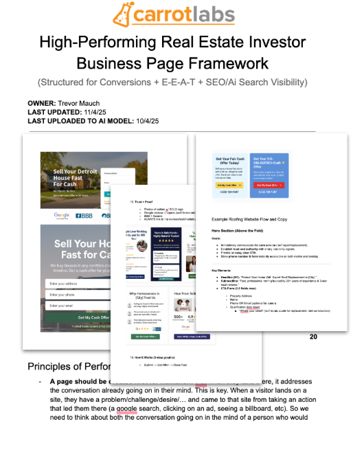In this training, we’ll unpack the full 11-part framework, explain how each element impacts AI Search, and show the exact layout today’s top-performing Carrot sites use to convert at 20–30%+. With Google shifting fast toward AI-driven results, this blueprint gives investors a clear path to stay visible and win more seller leads in competitive markets.